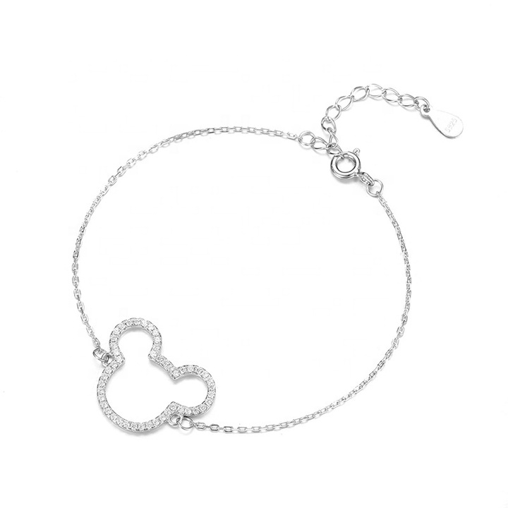 สร้อยข้อมือเพชรมิกกี้เมาส์แบบกลวงสีเงิน925สร้อยข้อมือเครื่องประดับสไตล์ญี่ปุ่นสดจัดส่งจากผู้ผลิต