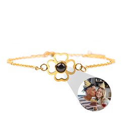 กำไลข้อมือใบโคลเวอร์สี่ใบสำหรับฉายภาพเงินสเตอร์ลิง925ใส่ประจำวันสร้อยข้อมือชุบทองสำหรับผู้หญิง